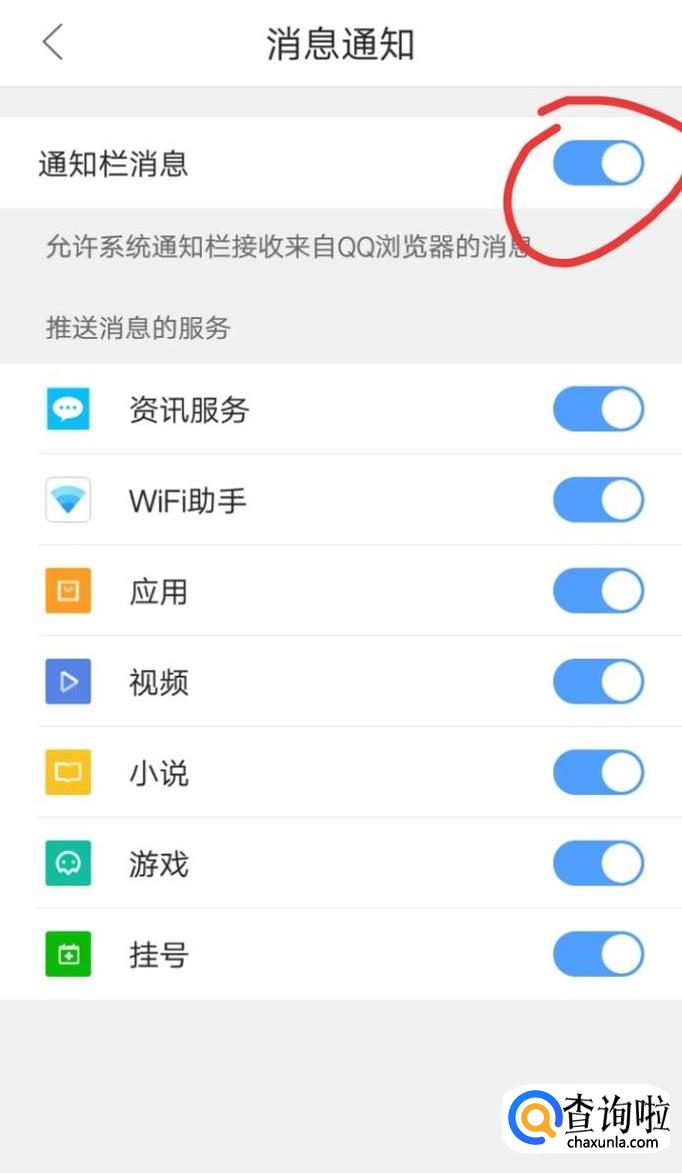 然后看到通知栏消息是开启的,关闭后面的开关,如下图所示。