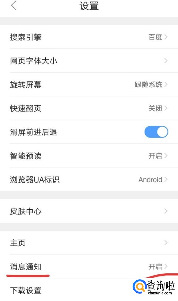 在设置里找到消息通知,会看到消息通知是开启的状态,点击消息通知。