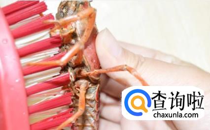 把小龙虾拿出来冲洗几遍后,用牙刷刷它的腹部,如下图所示。