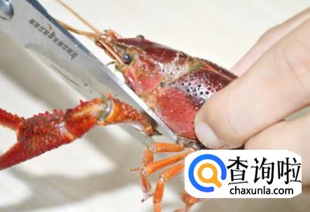 然后就用剪刀把小龙虾的钳子剪掉,这样就不用担心它夹你手了。