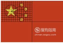 五星红旗五颗星星在国旗的左上方,四个小星星环绕(有一定弧度)在大星星的右方。