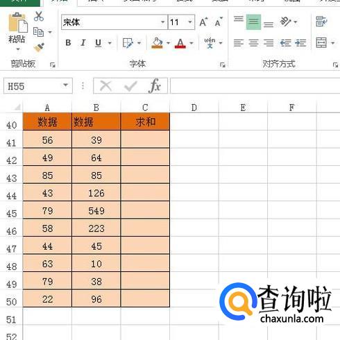 还有一种求和公式,就是不用函数的求和公式,就是两个单元格相加;比如,把C41:C50这些单元格选中后,再在编辑栏输入求和公式:A41+B41