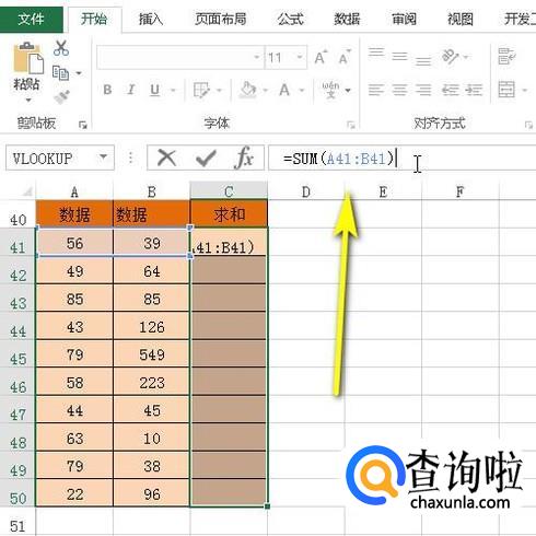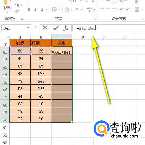 在这求和公式中,我们知道,SUM是求和的函数,而括号内的A41:B41就是求和的数值范围。