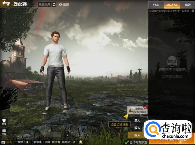 进入到【匹配赛】页面后,如下图所示当前角色是处于第三视角状态的。