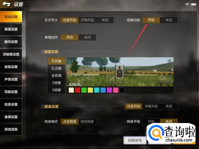 游戏中玩家想要切换到第一人称视角,首先需要开启【视角切换】功能。