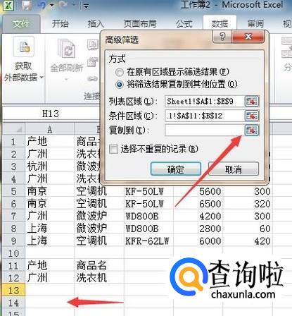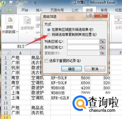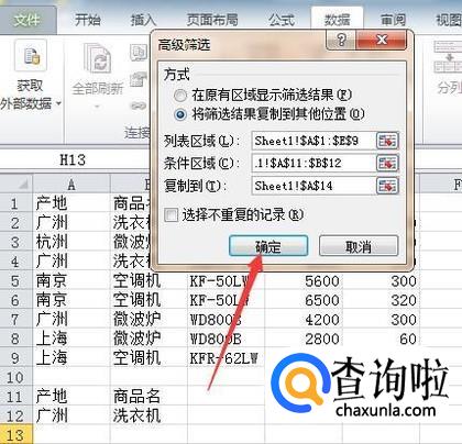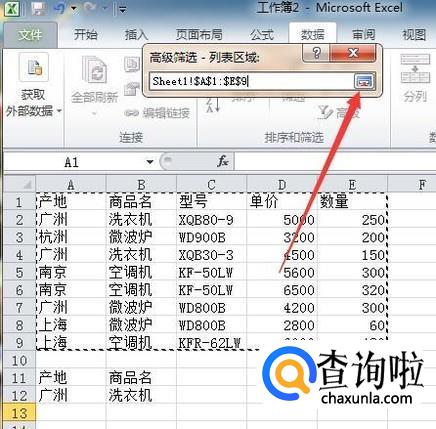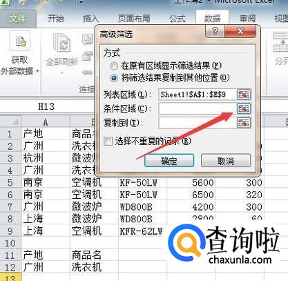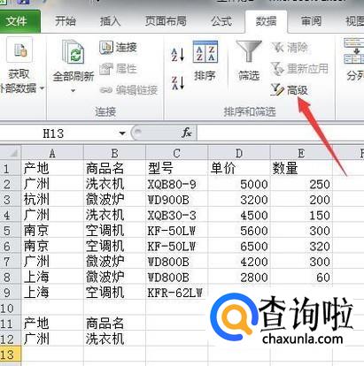 2010版excel:如何进行高级筛选