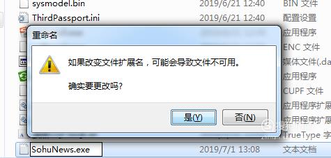 然后新建一个文本文档然后命名 为“SohuNews.exe”。注:重命名时提示“改变扩展名”--“是”。