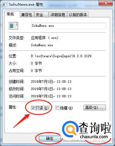 对新建的文件进行属性设置选择 文件--右键--属性--只读--应用并确定。