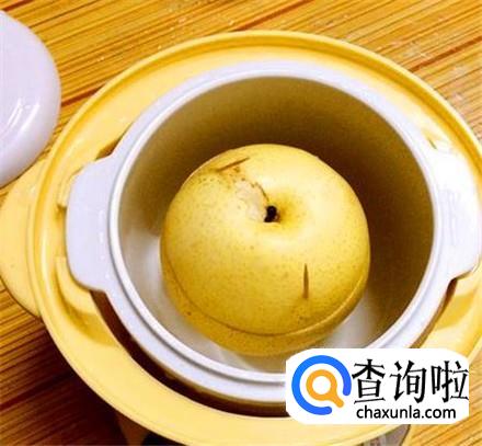 锅里加上清水,把雪梨放进炖盅或者碗里,把碗放进水里,盖上盖子炖三十分钟就可以了。