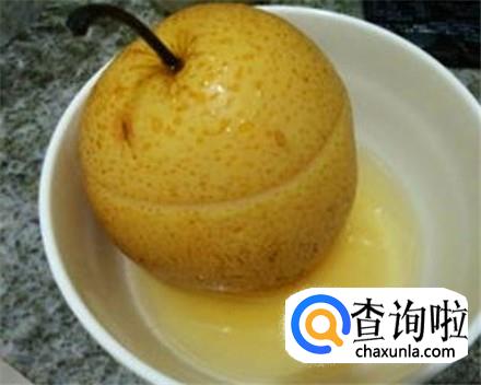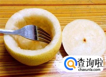 雪梨清洗干净,每次一个雪梨就可以了,将雪梨从上半部分打开,将核去掉。