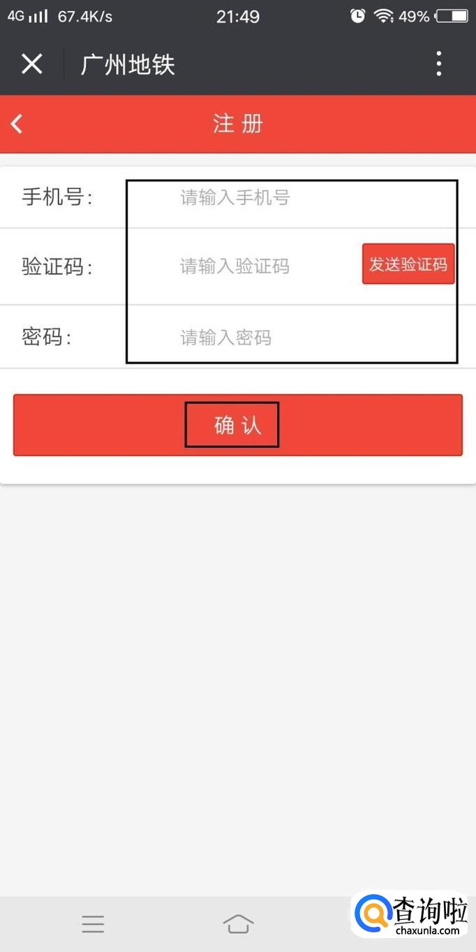 点击购票类型后,第一次购买车票的用户需要先注册帐号,点击注册,填写手机号、验证码及密码,即可注册,如图所示