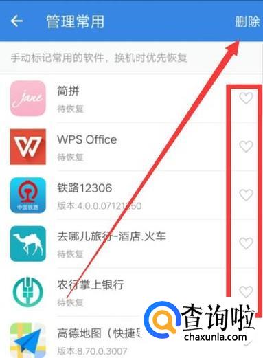 进入之后,点击图示位置的小心,然后点击“删除”即可对备份的软件进行管理,如图所示。