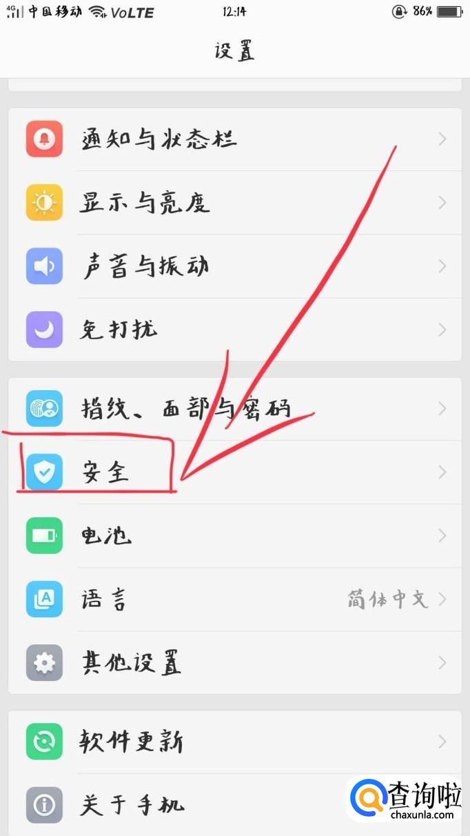 首先点击“设置”,再点击“安全”,找到“查找手机”,此时处于关闭状态。