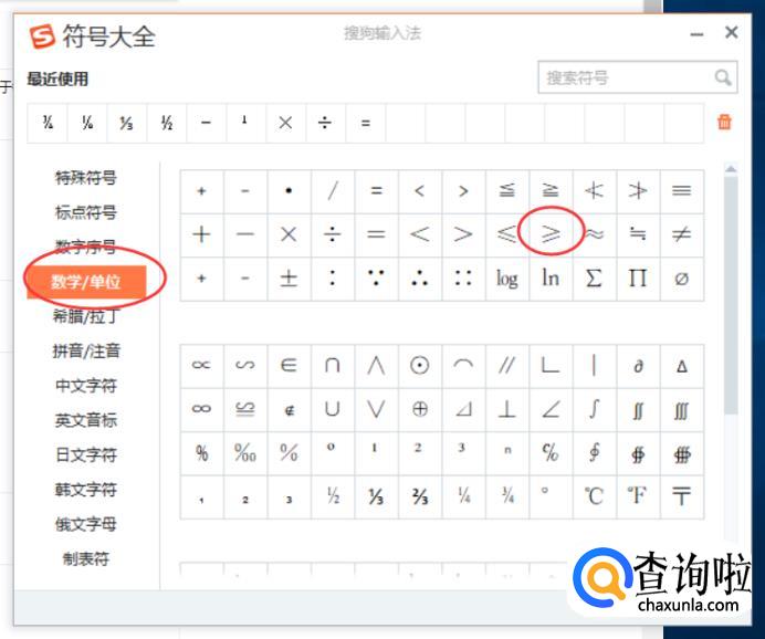 或者我们点击输入法中的“工具”,然后点击打开“符号大全”,在左边的菜单栏中选择“数字/单位”,然后在右边的符号栏中找到该符号,点击一下符号,就可以了。