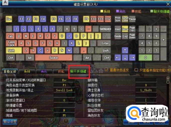在快捷键设置中,点击进入“聊天快捷键”设置分组。