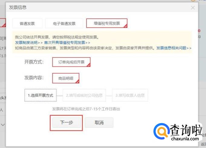 接下来,按照页面流程,选择刚才添加的增值税专用发票信息。