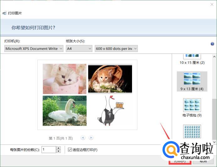 向下滑动之后我们点击【 9 x 13 厘米】,我们可以看到上面有四张图片。