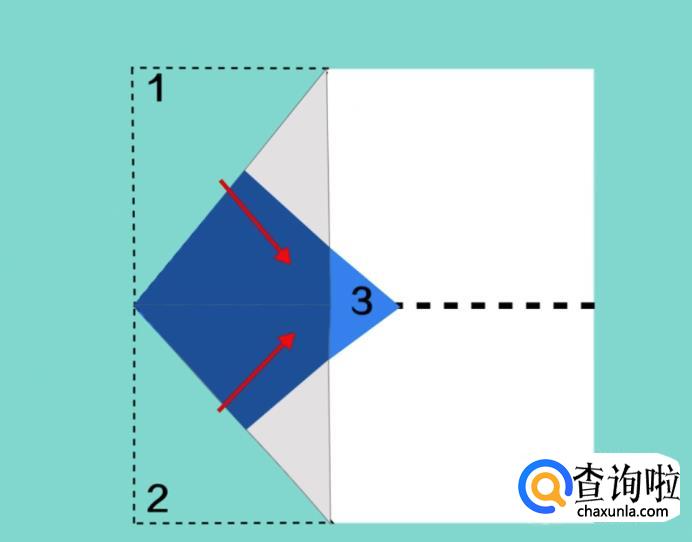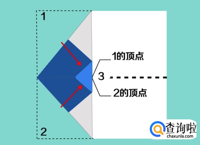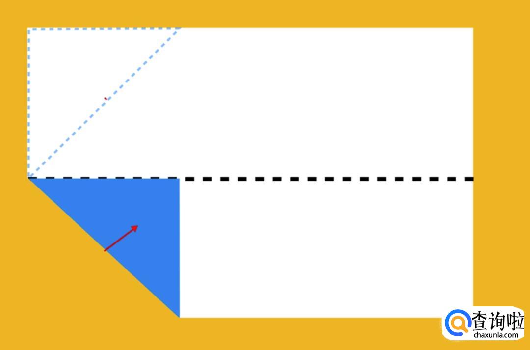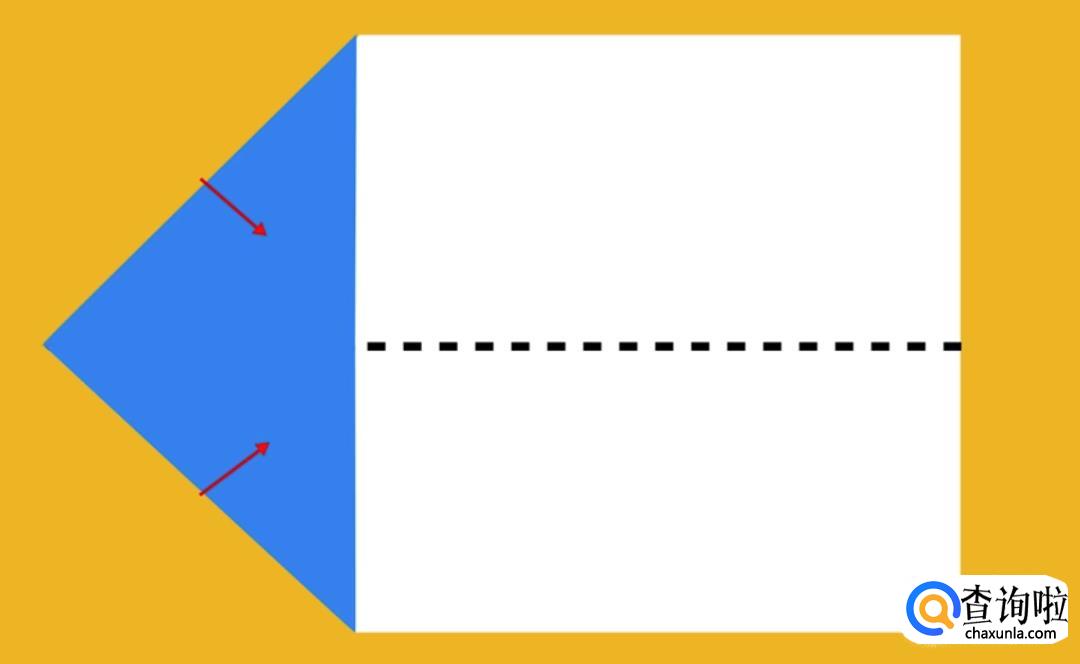 如下图所示再把两个角折向中线,但需要留出刚才折下去的三角的顶角,用来盖住折下来的角。