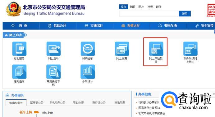 进入“办事大厅”以后,可以看到菜单栏内的“网上审验教育”选项,点击进入。