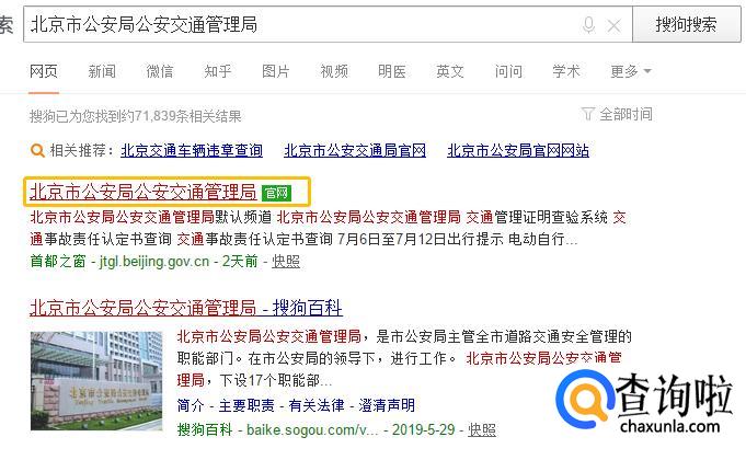 首先我们在浏览器中输入“北京市公安局公安交通管理局”,点击搜索。