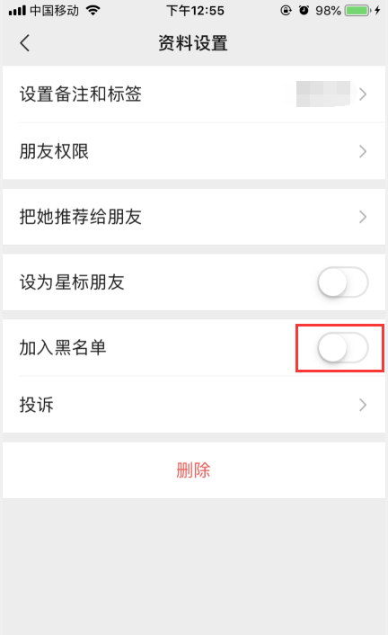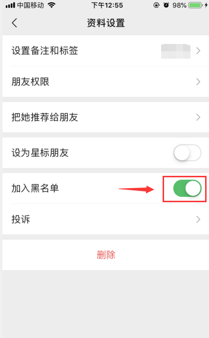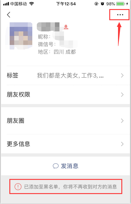 2、如果对方不小心把你拉黑,导致信息发不出去,那么你可以让对方讲你从黑名单中移出来。