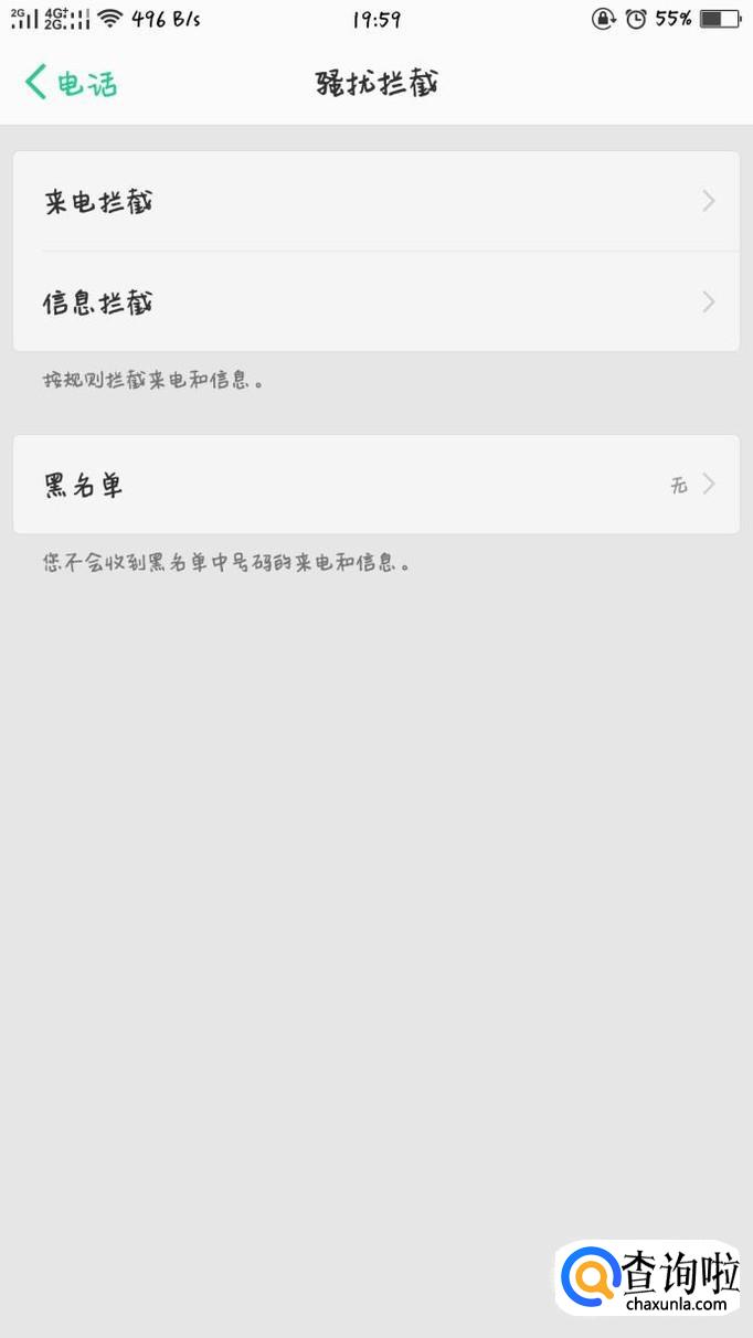 进入电话之后,选择第二项“骚扰拦截”。