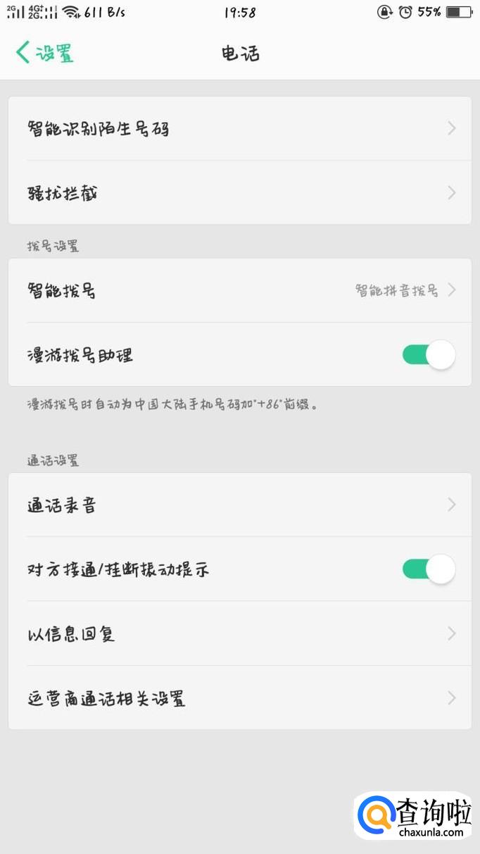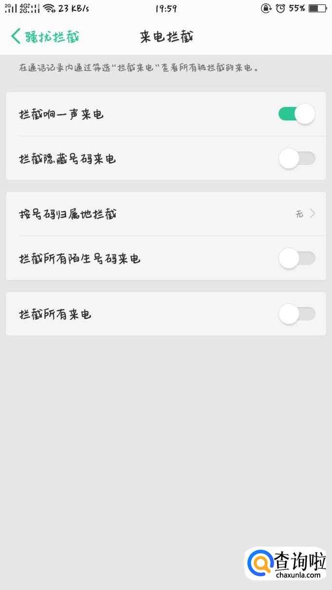 在此就可以有关于拦截陌生来电的设置,按需求设置想要拦截的电话类型即可。