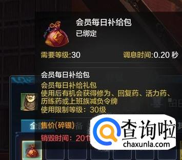 会员每日补给包会有对应的销毁时间,请在销毁时间内使用。
