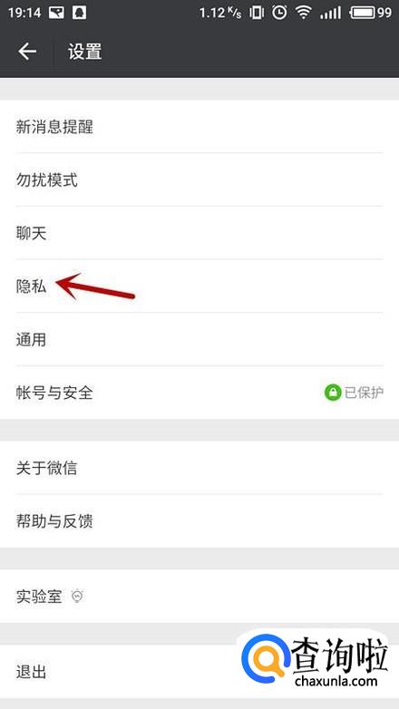 在设置中,选择“隐私”。