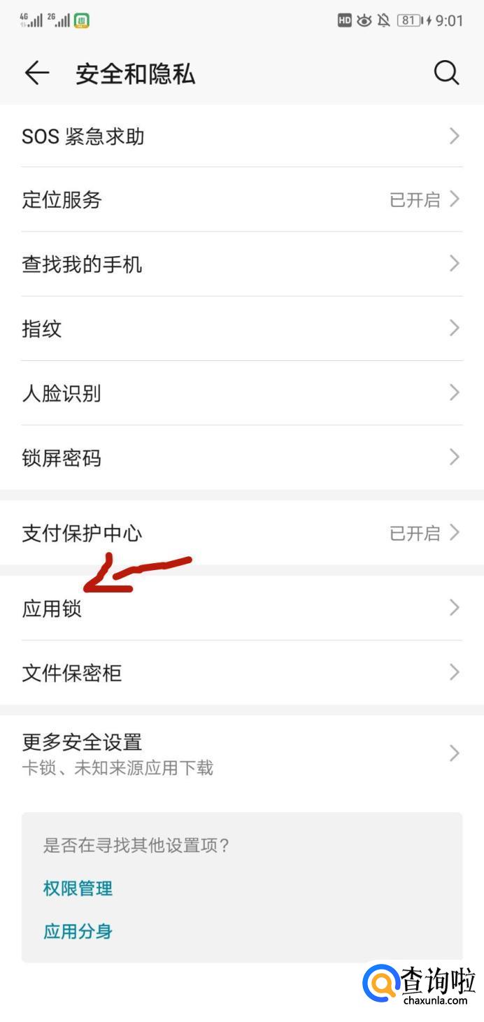 然后点击"应用锁"。
