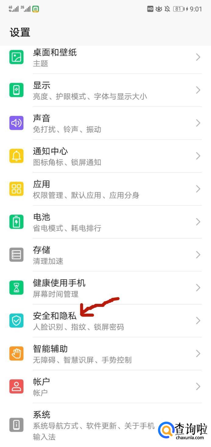 进入之后点击"安全和隐私"。