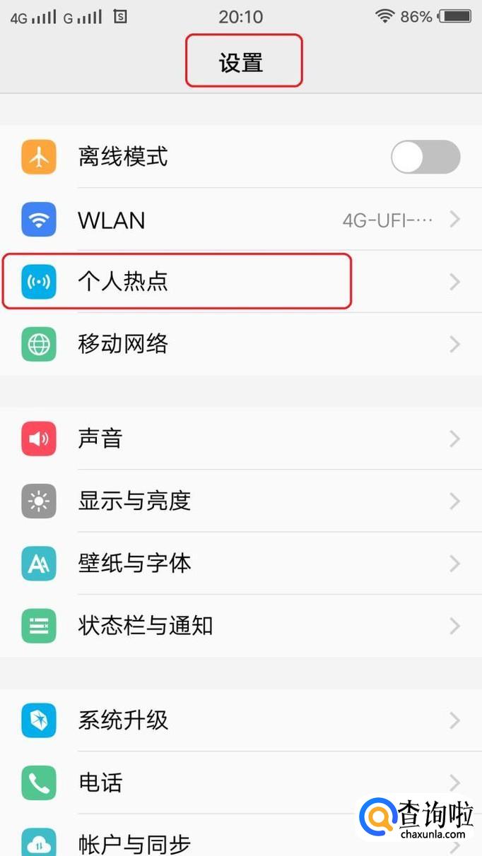 在“设置”里面,我们看到有“个人热点”这一项,点击打开。