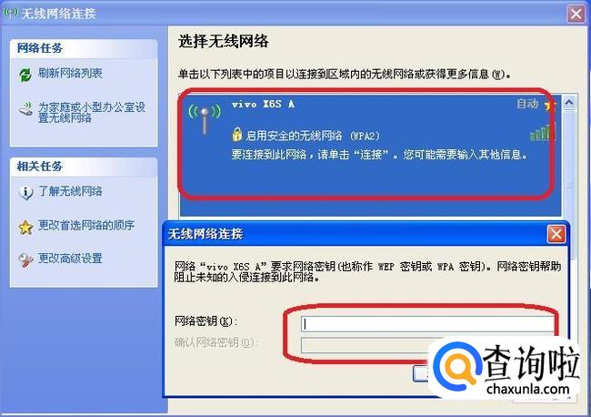 打开笔记本的“无线网络连接”,刷新一下就看见共享网络了,点击一下,输入两遍密码,点击“连接”。