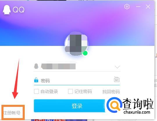 首先我们打开QQ,在弹出的登录对话框中,我们点击左下角的“注册账号”。