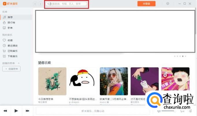 电脑进入虾米音乐首页,在上方的搜索栏搜索要下载的歌曲。