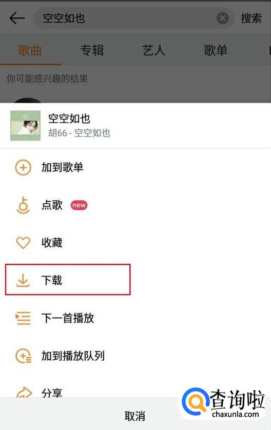 直接在歌曲界面点击下载图标或在歌曲的操作界面点击下载。
