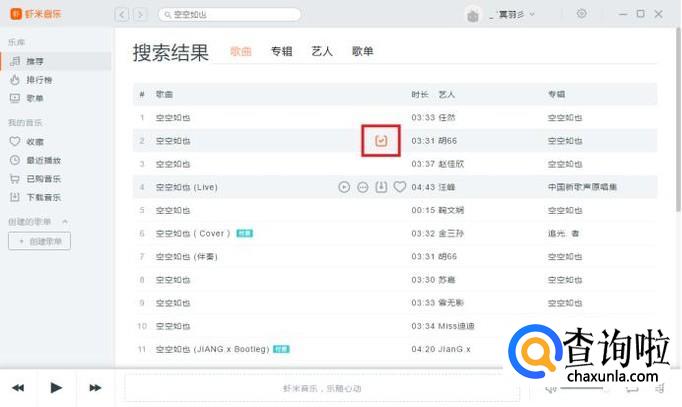 当所要下载的歌曲后面出现√时,即下载成功。
