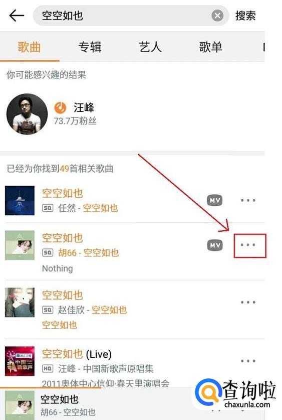直接点击歌曲或点击对应歌曲后面的省略号。