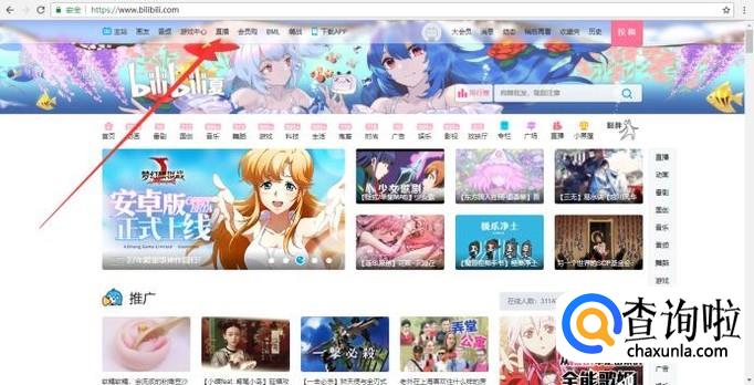 首先,使用电脑打开b站官网,登录b站并点击官网菜单栏中的直播。