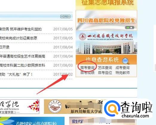 进入教育考试院的官网后,找到右下角的信息查询系统,点击“高考查询”。