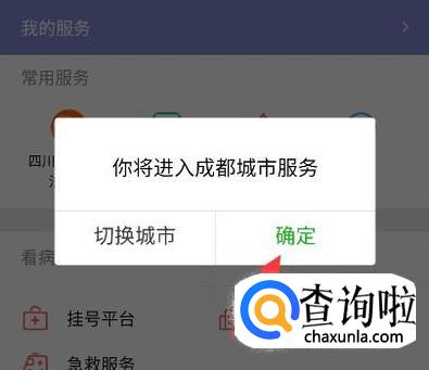 系统会自动定位所在城市,不准确的话切换城市,否则点击确定。