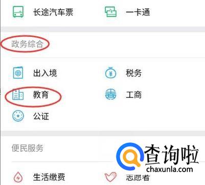 在“政务综合”一栏中找到“教育”。