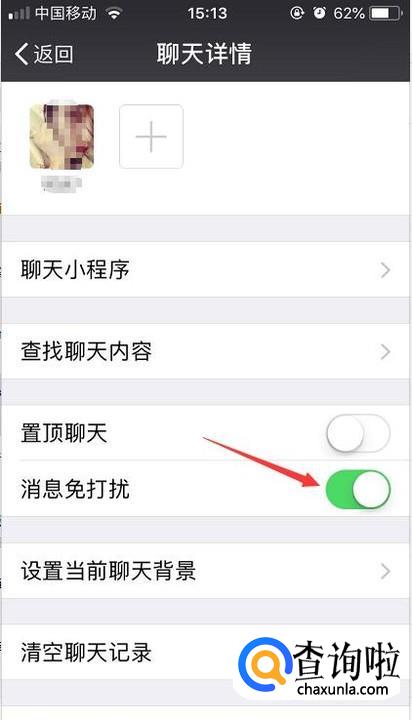 最后在聊天详情里面把消息免打扰打开就好了,这样好友在给你发消息时是收不到任何提示的。