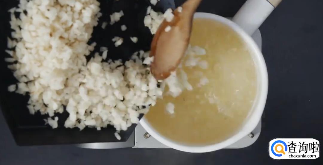 加入粉浆,搅拌均匀,小火煮至粘稠。