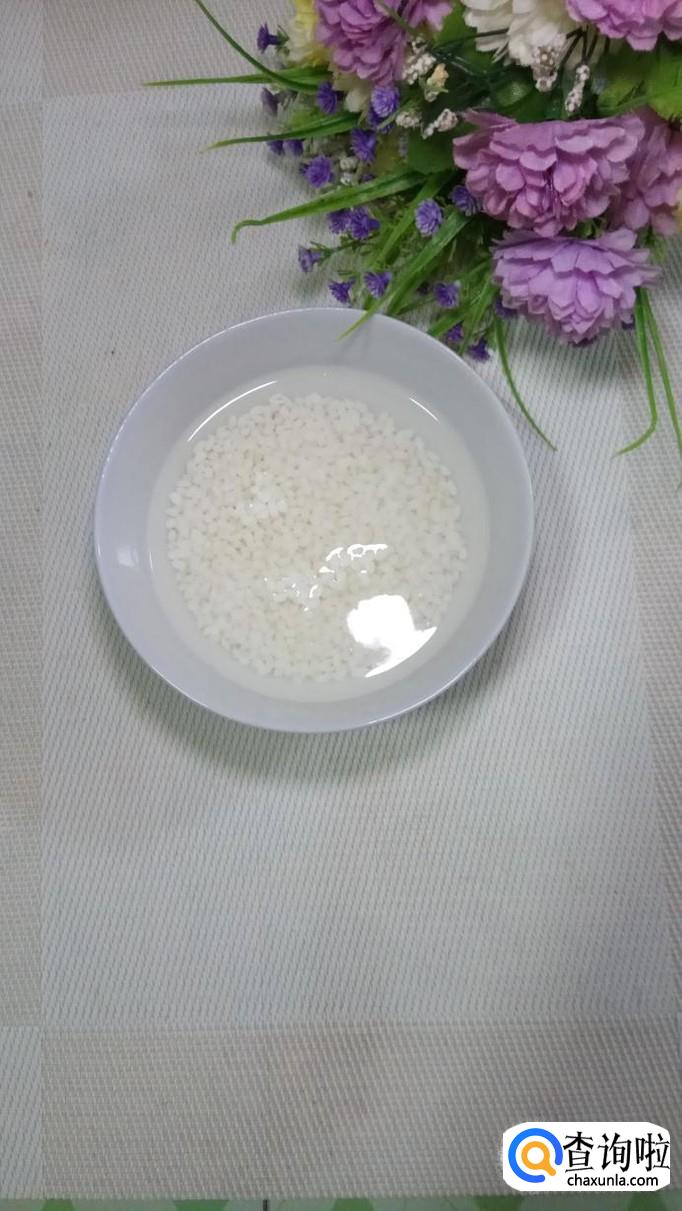 提前将糯米泡四个小时以上,泡好的糯米,用手就可以轻轻的捏碎,再准备适量红枣和葡萄干,用清水泡一下。