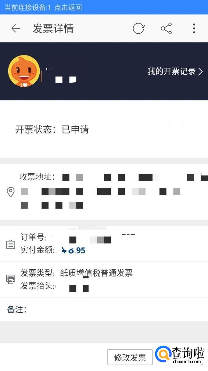 然后我们输入相关的发票信息和收取发票的地址和等信息就可以了。