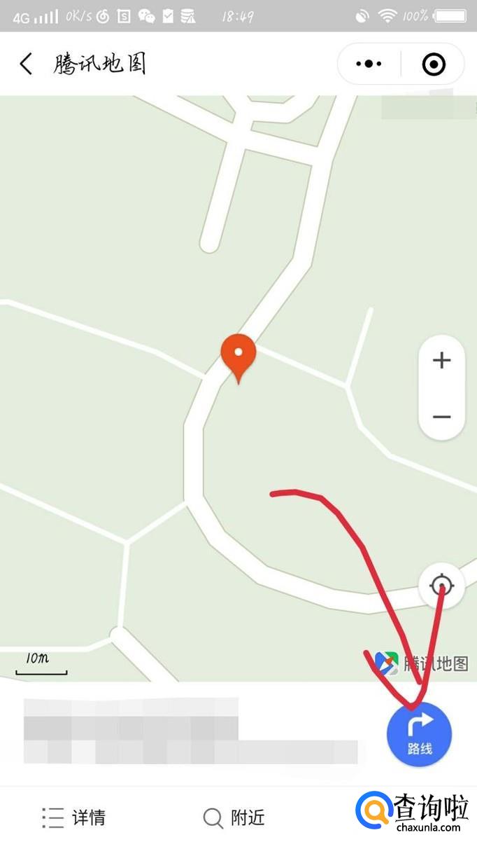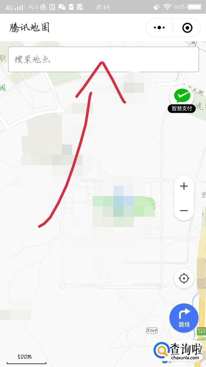 点击进入腾讯地图公众号,在如图1箭头所示的地方输入你的目的地,输入好以后点击“路线”如图2箭头所示。