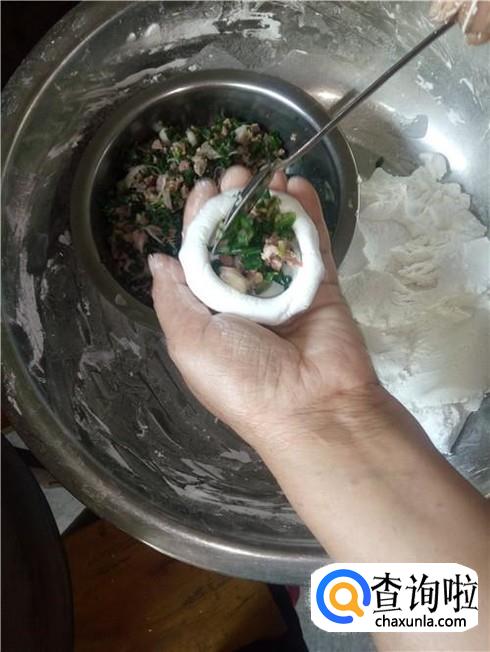 腊瘦肉切末,葱切末,加入少量花椒面拌匀。