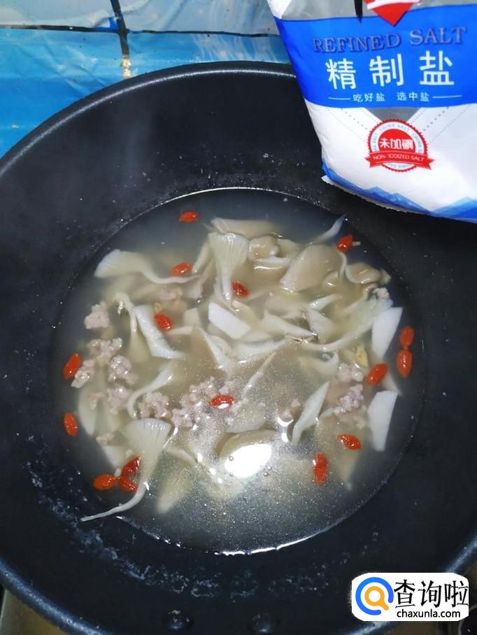 提前将枸杞子用清水泡一下,将枸杞子也放入锅中,再煮5分钟。