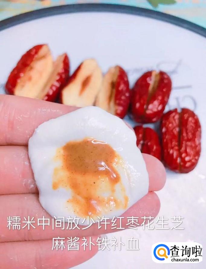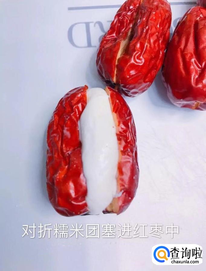 接着把糯米团对折塞进红枣中,如下图所示。